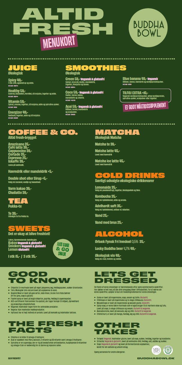 Med 60-90 % økologi i ryggen og et løfte om ALTID FRESH er du garanteret, at vi går hele vejen for at levere en oplevelse, der smager af mere.